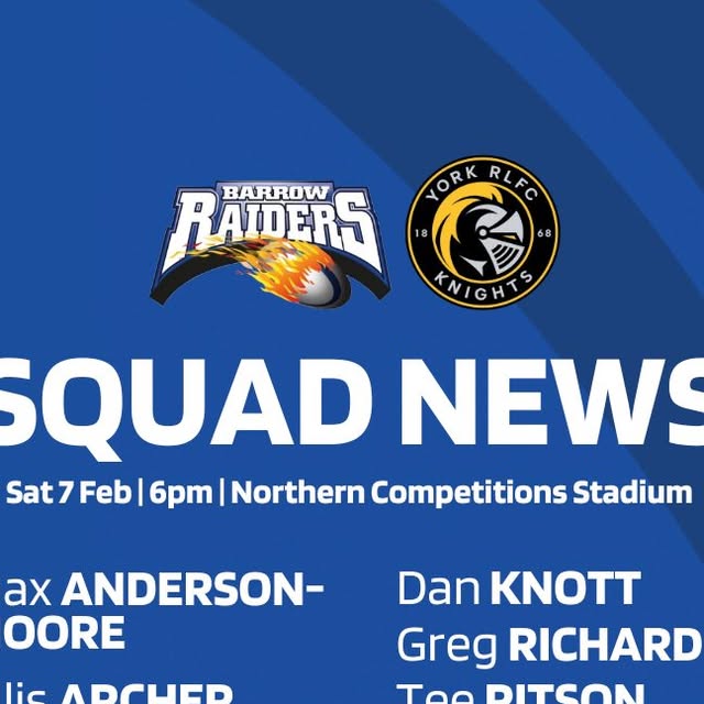 🏉 York Knights announce squad for Barrow Cup clash; Knights head to Craven Park this weekend (Feb 6-8) to face Championship side Barrow Raiders in Challenge Cup third round. Mark Applegarth named his 21-man squad featuring new signings Jordan Lipp, Sam Wood, Paul Vaughan, Josh Griffin, and Denive Balmforth. Crucial preparation ahead of Super League opener against Hull KR on February 12th. York won both Championship fixtures against Barrow last year (36-12 away, 26-12 home).