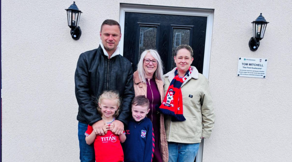 🏟️ York City Legend Tom Mitchell Honoured at Bootham Crescent; First apartment building on the new Bootham Crescent development officially named Mitchell House Friday after Tom Mitchell - who scored York City's first ever goal at the old ground in 1932. His granddaughter and three generations of family attended. About 93 new homes being built on the site.